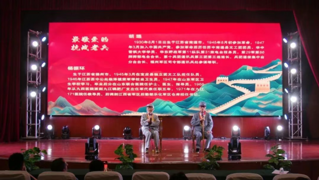 诗会特别邀请两位年逾九旬的抗战老兵胡琏、杨振环亲临现场。他们以亲身经历讲述烽火岁月的革命故事,带领观众穿越时空,重温峥嵘历程。老兵们坚毅的目光与铿锵的话语,让在场师生深刻感受到“一寸山河一寸血”的家国情怀,掌声数次响彻全场。