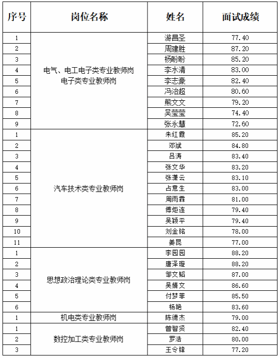 根据《江西电子信息职业技术学院2025年第二批合同聘用制人员招聘公告》(以下简称原公告)要求,面试工作已经结束。按照考生总成绩从高到低的原则确定了体检入围人员。体检标准参照《江西省教师资格申请人员体检办法(修订)》执行。体检单位由学院指定,费用自理,体检不合格者不进入考察程序。现将体检入围人员名单予以公布。