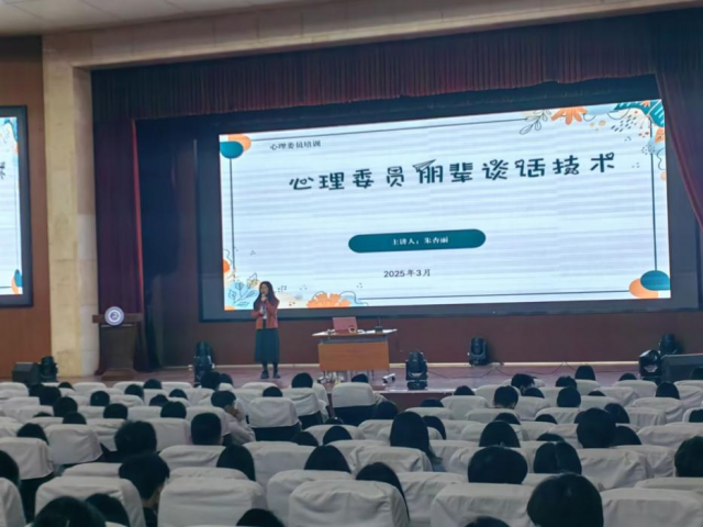 为深化心理健康教育,赋能班级心理委员“助人自助”能力,3月24日,心理健康教育中心在学术报告厅举办了“‘心’有力量,‘委’梦前行”主题心理委员培训。本次培训由心理健康教育中心朱杏丽老师主讲,各班心理委员参加。