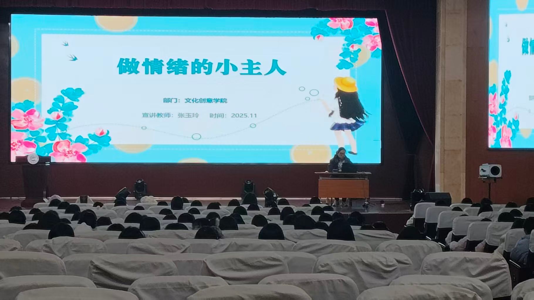 11月18日,张玉玲老师主讲“做情绪的小主人”,聚焦情绪管理与心理健康维护。她通过互动体验和情景模拟,指导学生识别情绪、调节压力,培养积极乐观的生活态度,真正成为情绪的主人。